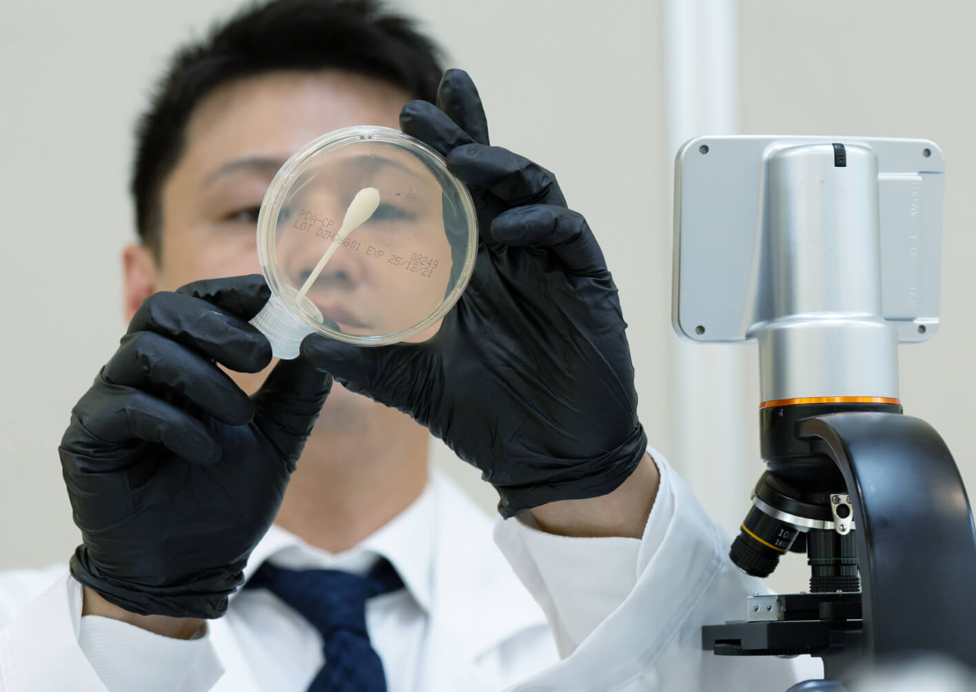 豊富な実績と専門知識をもとに、迅速かつ的確に原因を究明し、除菌すべき範囲や再発防止策を含めた包括的な改善提案を行います。調査後は自社開発の専用液剤を用いた除カビ施工・防カビ処理までワンストップで対応いたします。